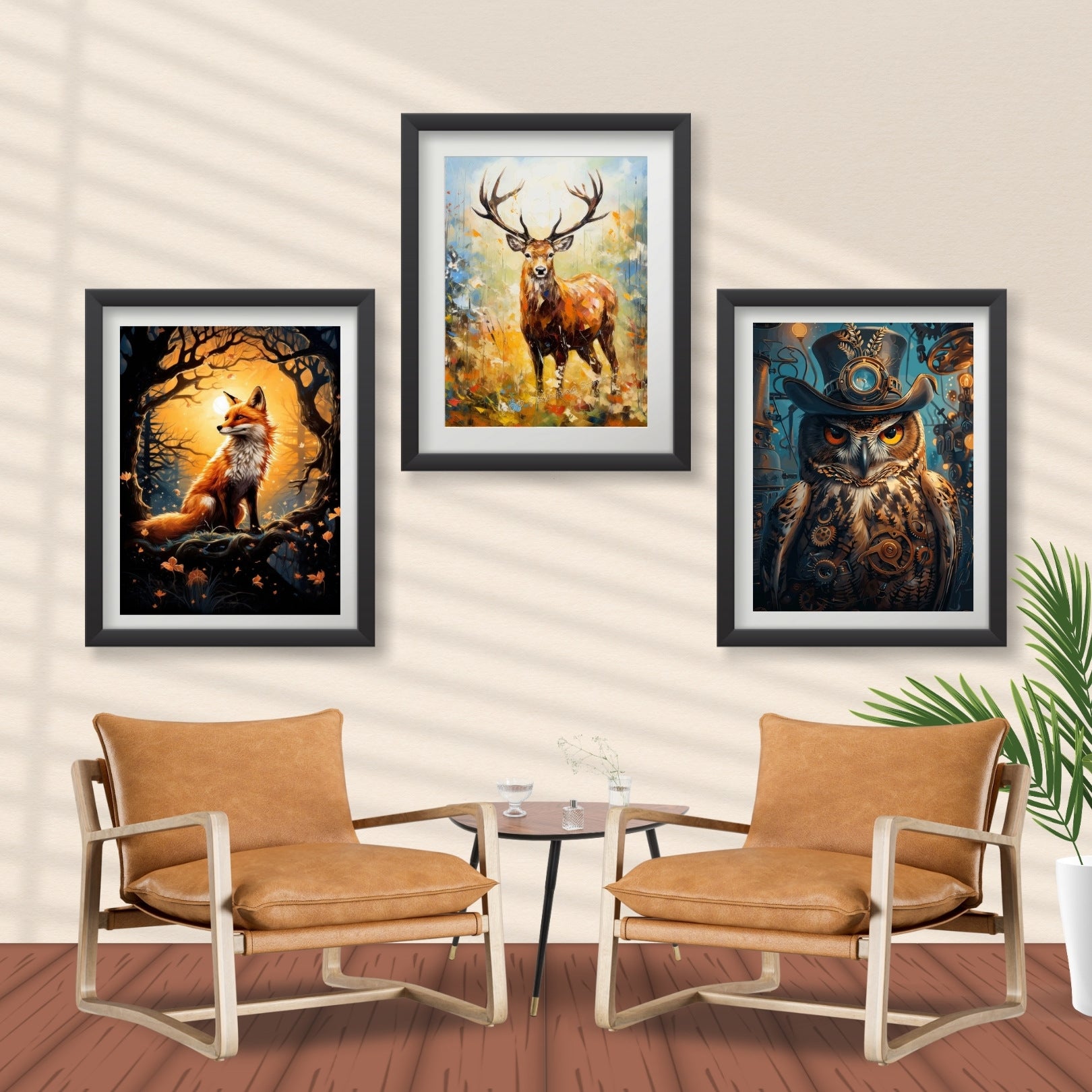 "The animal-themed wall art fits perfectly in my study. Quality is excellent, and colors are exactly as pictured."